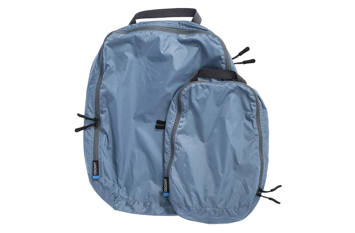 Vielseitiger Packbeutel mit zwei voneinander getrennten Taschen. Eine Tasche mit Innenlaminierung für schmutzige und nasse Gegenstände, eine luftdurchlässige Netztasche für saubere Gegenstände. Einfach ideal, um auseinanderzuhalten, was nicht zusammengehört!
