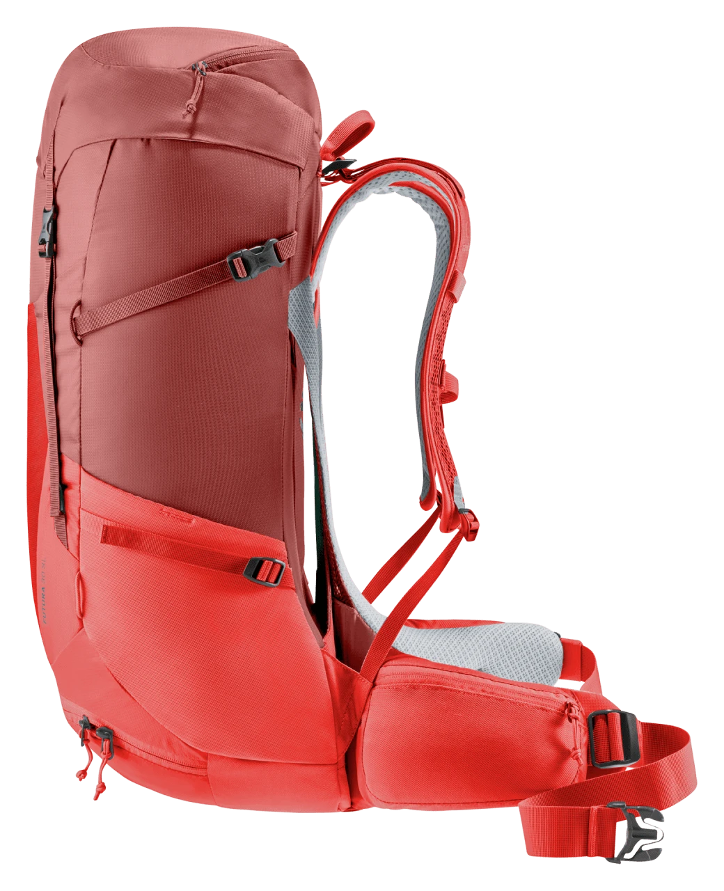 Der Futura SL ist aufgrund des kürzeren Rückens, der schmäleren Schulterträger und der konisch geformten Hüftflossen speziell auf die weibliche Anatomie abgestimmt und sorgt damit für erhöhten Tragekomfort auf längeren Tages- und Mehrtageswanderungen. Zudem bietet das neue Mesh des Aircomfort Rückensystem maximale Belüftung und verringert das Schwitzen damit um bis zu 25 %. Zudem verschafft das separate Bodenfach einen leichten Zugriff auf den Inhalt des Rucksacks.
