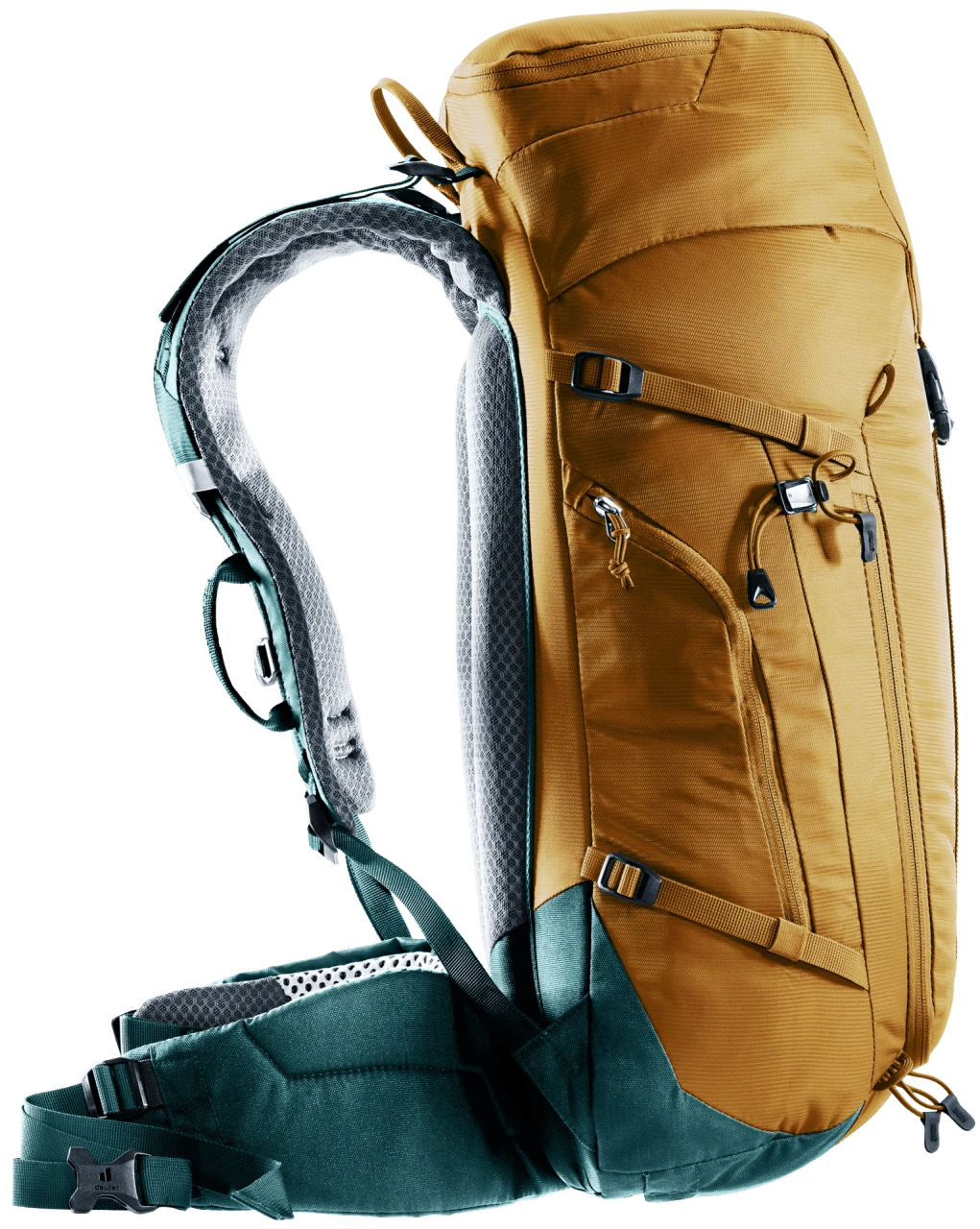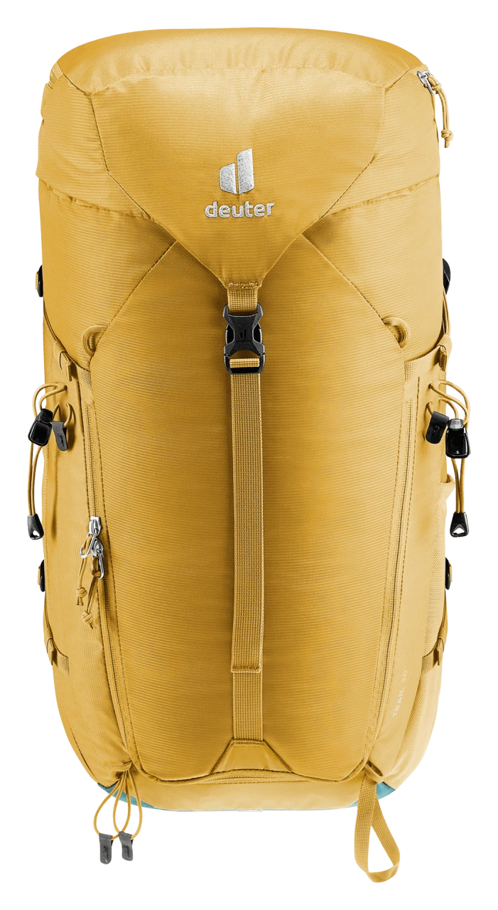 Das Airstripes Rückensystem mit geringer Rückenauflage und großen Belüftungskanälen sowie die perforierten Schulterträger und Hüftflossen sorgen für optimale Luftzirkulation, eine körpernahe Gewichtsverteilung und damit einen kompakten Sitz in jedem Terrain. Die flache Deckelkonstruktion bietet gute Kopffreiheit – auch mit Helm. Dank Fixierungen an den Schulterträgern sind die Karabiner des Klettersteigsets stets griffbereit. Zudem sind Ausrüstungsgegenstände und Material dank großem Reißverschluss-Frontzugang und Seitentaschen schnell zur Hand.
