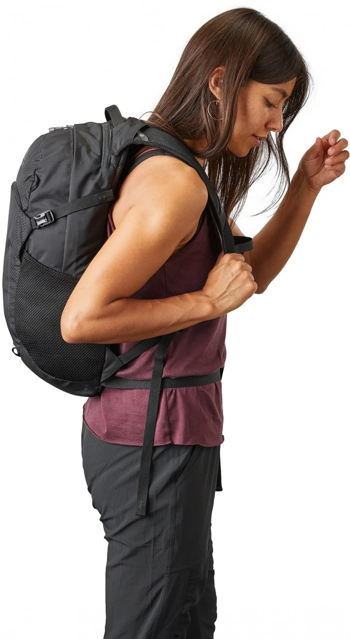 Das Tragesystem mit den gepolsterten Schulterträgern ist bestens bis knapp 7 Kilogramm tragbar. Der gepolsterte Meshrücken sorgt für einen hohen Komfort, mit dem Hüft- und Brustgurt trägt sich der volle Nano 18 bequem – und wenn du den Hüftgurt nicht benötigst, weil du leicht unterwegs bist, kannst du diesen abnehmen und sparst noch zusätzliches Gewicht.