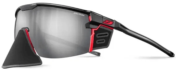 Hier mit Spectron Kategorie 4 Gläsern. Mit der ULTIMATE COVER, die maximalen Schutz und ultra-leichtes Gewicht kombiniert, erfindet Julbo die Bergbrille neu. Dieses Modell garantiert einen optimalen Schutz der Augen und des Gesichts dank abnehmbarem Seiten- und Nasenschutz aus Spandex, der angenehm zu tragen ist und wirksam vor Sonne, Wind und Kälte schützt. Das modulare Design der Brille gestattet es Bergsportlern, die Brille an die jeweiligen Bedingungen vom Training im Tal bis hin zu großen Bergtouren im Hochgebirge anzupassen. Die CustomFIT Bügel, die eine präzise und unveränderliche individuelle Anpassung ermöglichen, gewährleisten in Verbindung mit der Grip Tech Struktur einen sicheren Halt bei ausgesprochen leichtem Gewicht. Die mit 3D-Nasensteg ausgestattete Brille sitzt auch bei körperlicher Anstrengung immer perfekt, egal ob sie mit oder ohne Helm getragen wird. Ihren aggressiven Look hat sie ihrer Panoramascheibe zu verdanken – dem Inbegriff von Schutz und Sehkomfort – dank ihrem selbsttönenden REACTIV Photochromic Glas. Die ULTIMATE COVER hilft dir dabei neue Gipfel zu erreichen!