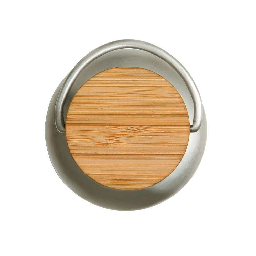 Die Trinkflasche besteht aus 18/8 lebensmittelechtem Edelstahl und hat eine elektropolierte Oberfläche im Innern der Flasche, die den Geschmack weder aufnimmt noch beeinträchtigt. Der Verschluss aus Edelstahl mit Bambusoberfläche sieht nicht nur schön aus, er ist ebenso praktisch mit dem Henkel.