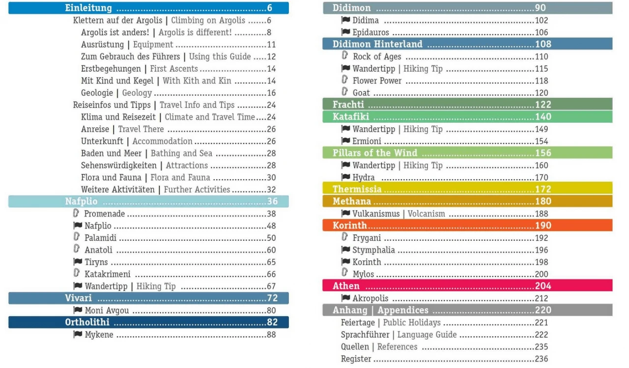 Hier wird das Gebiet Argolis südlich von Athen beschrieben. Bei allem Hype um Leonidio sollte man Argolis nicht vergessen! Erstens ist es deutlich näher an Athen und zweitens sollte man die Felsqualität, die vielen moderaten und familienfreundlichen Routen sowie die Meeresnähe in Argolis absolut nicht verachten. Das Buch beschreibt im Übrigen auch Kindertauglichkeit der Zustiege und des Wandfußgeländes! Weiterhin liegt Argolis von Athen aus auf dem Weg nach Leonidio. Wer also mal was neues entdecken möchte, ist hier richtig. Die Stärke des Kletterführer Argolis liegt neben der Familienfreundlichkeit darin, dass auch Reiseaspekte beschrieben werden. Man erfährt also auch was über Kultur und Land und ist somit für eine ganzheitliche Reise bestens informiert. Auch ein Klettergebiete nahe Athen sowie eines bei Korinth werden beschrieben. Alles, was das Reise- und Kletterherz begehrt!