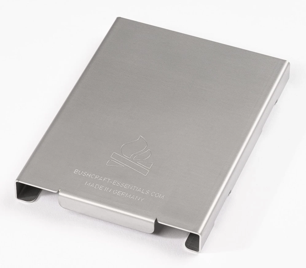 • Als feuerfeste, trockene Unterlage verwendet, lassen sich darauf Feathersticks schnitzen, Rinde schaben und vieles mehr, um ein Feuer zu entfachen. Das entzündete Material kann direkt vom Einschub in die aufgestellte Bushbox gegeben werden.