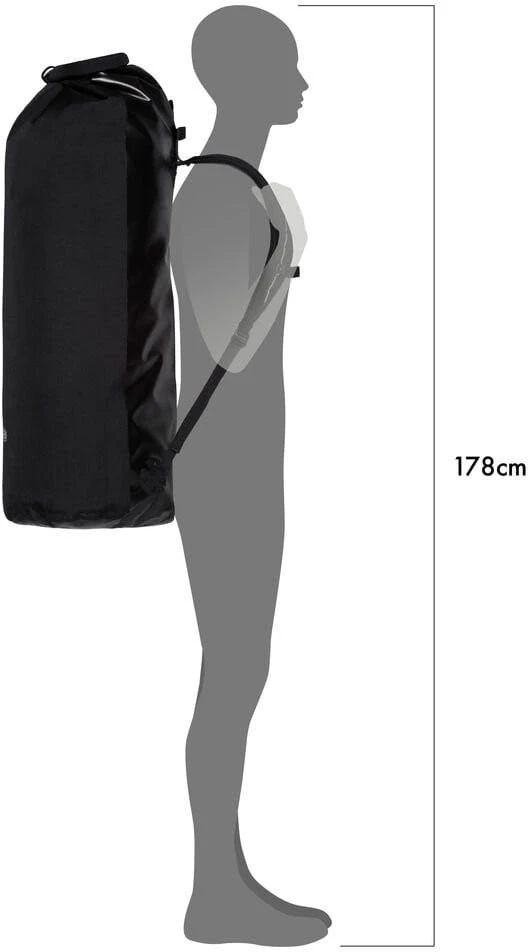 Die angegebene Höhe der Packsäcke bezieht sich auf den geschlossenen Zustand, dreimal eingerollt. Für die Höhe im unverschlossenen Zustand bitte 20 cm hinzurechnen.