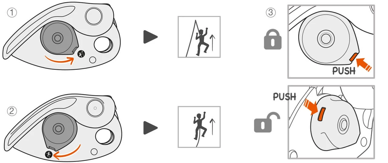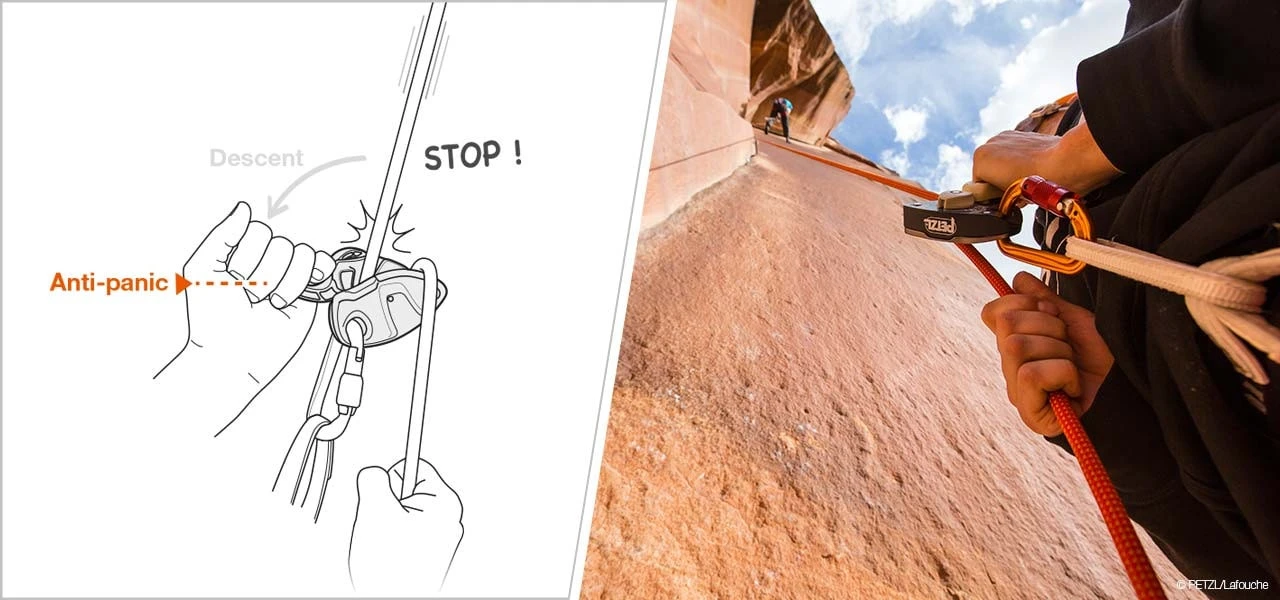 Lies unbedingt die Bedienungsanleitung und beachte das Verhalten des Grigri + mit unterschiedlichen Seilen und bei unterschiedlichen Bedingungen und befasse dich mit dem Thema Seilausgeben.