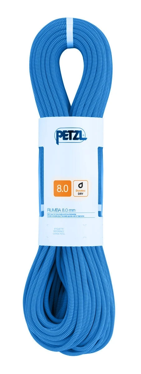 Das vielseitig einsetzbare RUMBA 8 mm Halbseil ist sowohl zum Klettern von Mehrseillängenrouten als auch zum Bergsteigen und Eisklettern geeignet. Es verfügt über einen verstärkten Mantel zur Erhöhung der Lebensdauer und ist zudem mit der wasserabweisenden Duratec-Dry-Imprägnierung versehen, die beste Leistungseigenschaften bei allen Bedingungen garantiert. Das Seil ist ausgesprochen griffig und ermöglicht ein gutes Handling.
