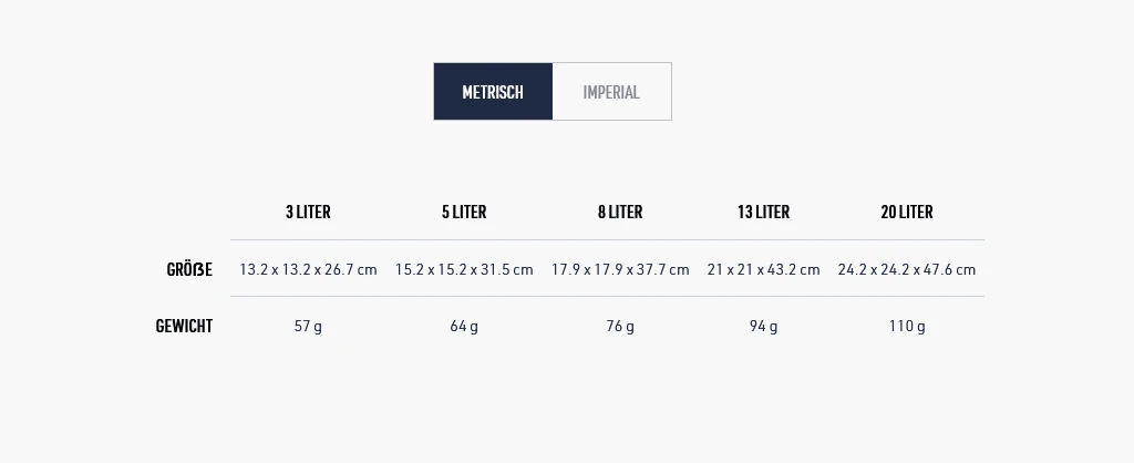 - Komprimiert den weichen Inhalt auf die kleinstmögliche Größe, während das Gewicht deines Rucksacks auf ein Minimum reduziert wird
