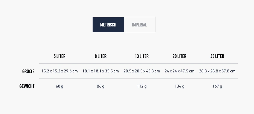 - M, L und XL: Vier Gurte mit zwei Ladderlocks und zwei leicht zugänglichen seitlichen Schnallen sorgen für eine gleichmäßige Kompression und verhindern das Ausbeulen