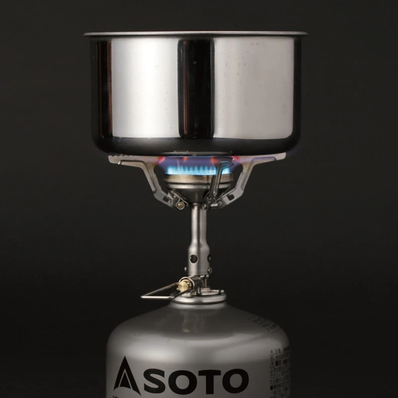 Der Amicus Gaskocher von Soto ist superleicht, extrem klein verpackbar und dennoch sehr leicht verpackbar. Vier ausfaltbare Topfauflagen sorgen für einen guten Stand.