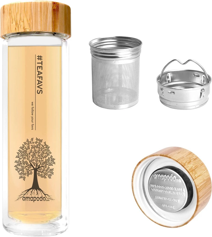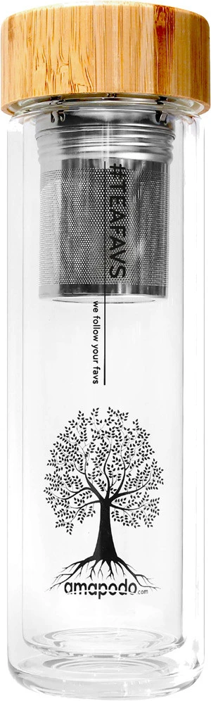 Amapodo Teafavs – für Teefans, die ihr tolles Gebräu aus einem praktischen, hochwertigen Gefäß trinken möchten. In diesem Teeglas kannst du mit den beiden unterschiedlichen Aufsätzen deinen losen Tee zubereiten. Der Deckel des Teefiltereinsatzes kann auch als Behälter für Kandiszucker beim Aufgießen verwendet werden.